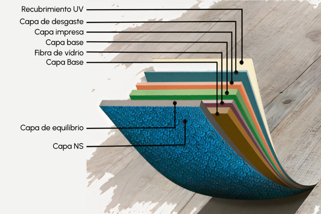 Su núcleo rÃgido no se deforma con los cambios de temperatura y humedad, garantizando una superficie plana y estable.